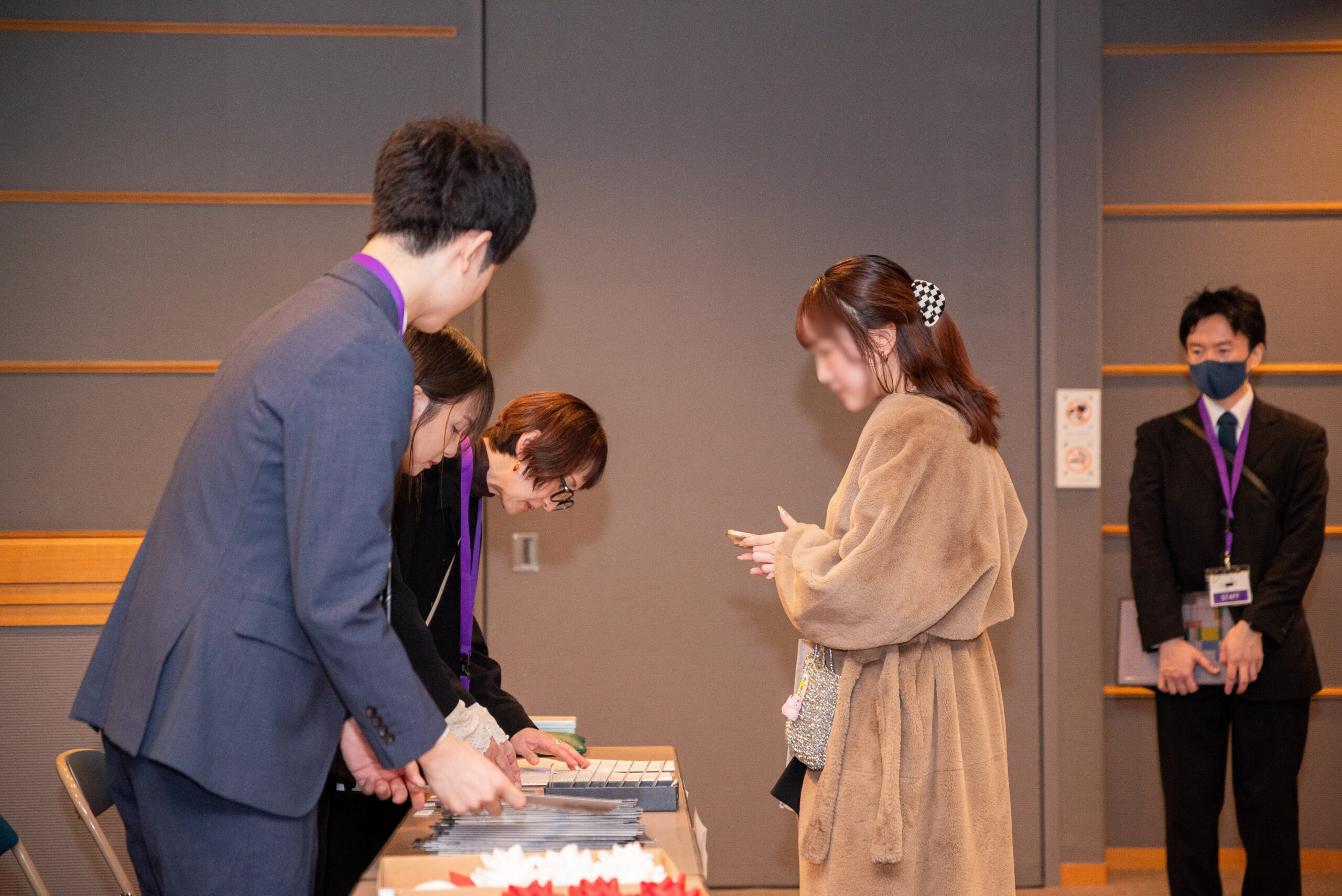 会場となった京都文化博物館には、表彰式に当選された京都映画賞会員の皆様にお越しいただきました。受付では式次第と京都映画賞のロゴがデザインされたチケットホルダーをお配りしました。