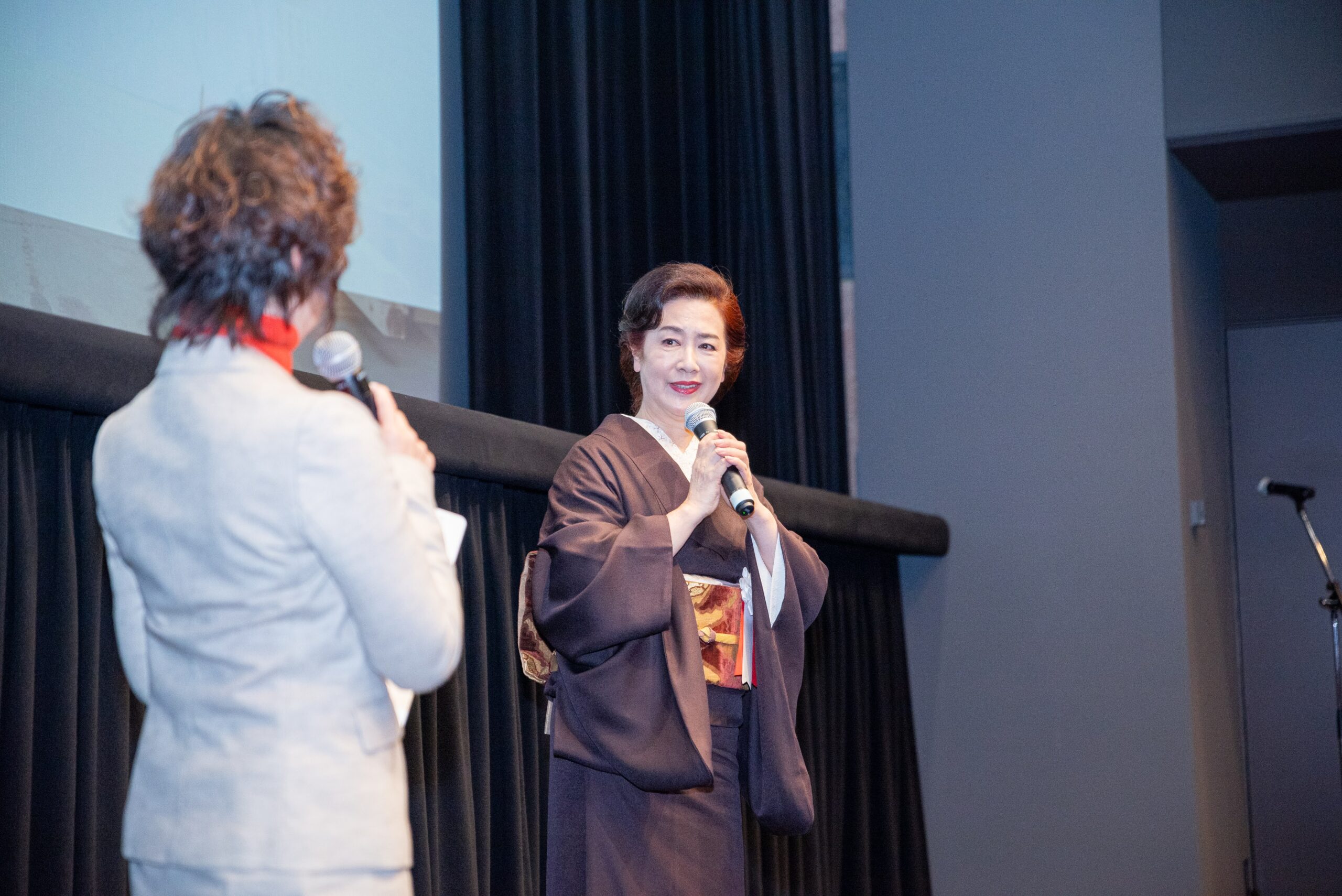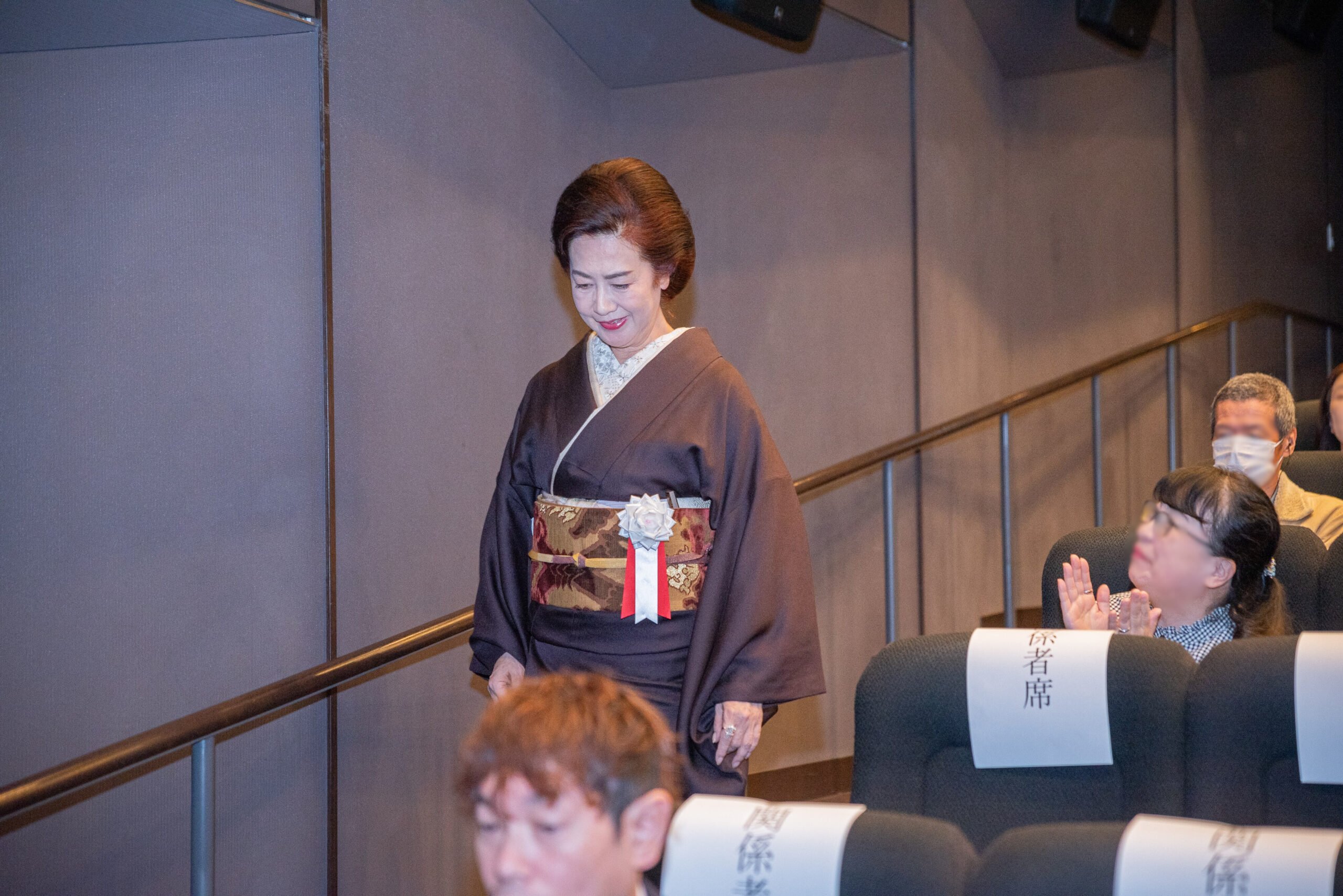 シアター後部の扉から、和やかな表情で登場された京都映画賞名誉会員の名取裕子さん
